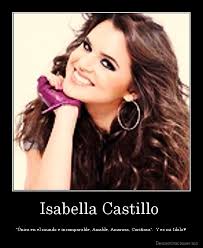 Isabella Maria Castillo Díaz, mais conhecida como Isabella Castillo é uma atriz, modelo e cantora cubana.Sua personagem mais conhecida é a de Graciela "Grachi" Alonso, protagonista da novela Grachi da Nickelodeon Latinoaméricana. Como cantora, Castillo lançou várias músicas da trilha sonora de Grachi, cantada junto de outros membros do elenco, como Kimberly Dos Ramos,Andrés Mercado, María Gabriela de Faría, Lance Dos Ramos e Willy Martin. Edição: by Laura